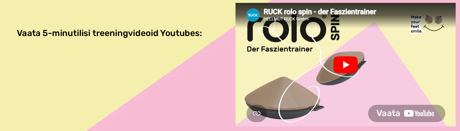 Ei. RUCK® rolo spin on täiendav treening- ja teraapiavahend. Raskete või krooniliste haiguste korral on alati soovitatav arsti, podoloogi, jalaspetsialisti või füsioterapeudi professionaalne hindamine.